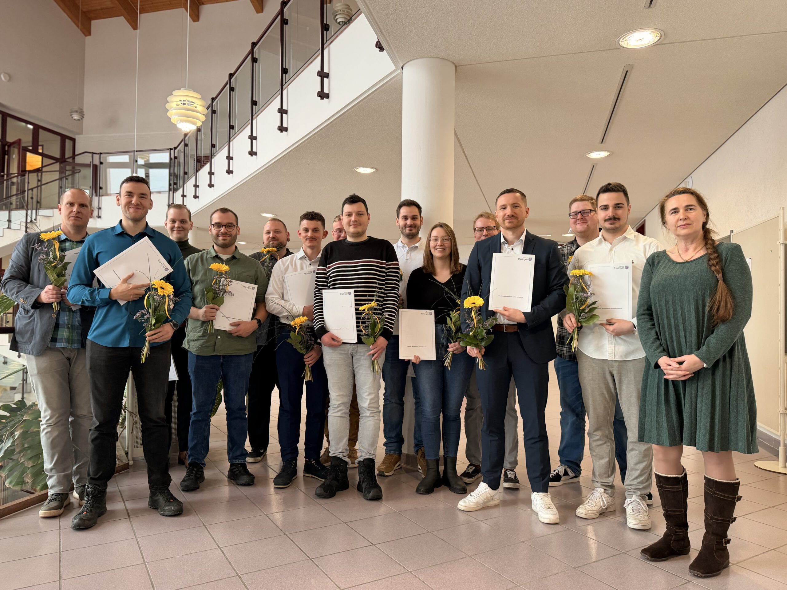 Sonneberg, 30. Januar 2026 – In feierlichem Rahmen fand am Freitag die Zeugnisausgabe der Weiterbildung zum Staatlich geprüften Technischen Betriebswirt an der Staatlichen Berufsbildenden Schule (SBBS) Sonneberg statt. Insgesamt 15 Absolventen konnten nach einer intensiven Vollzeitweiterbildung über ein halbes Schuljahr ihre Abschlusszeugnisse entgegennehmen.