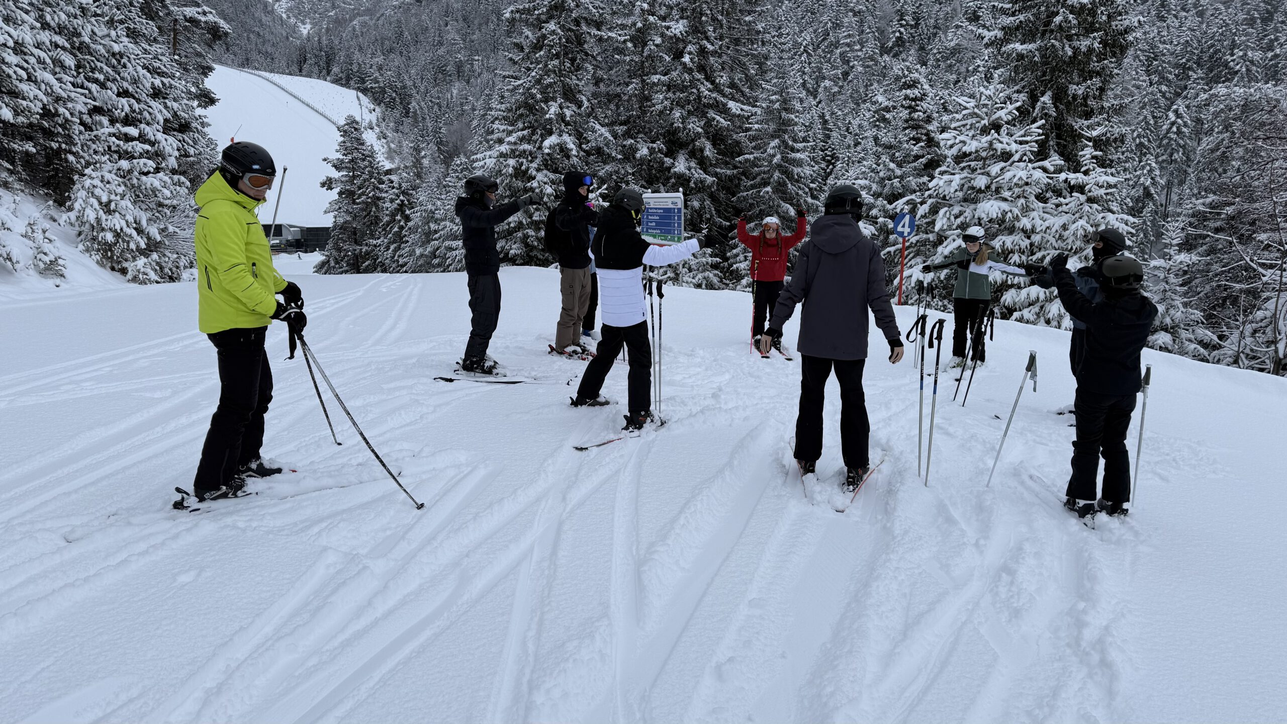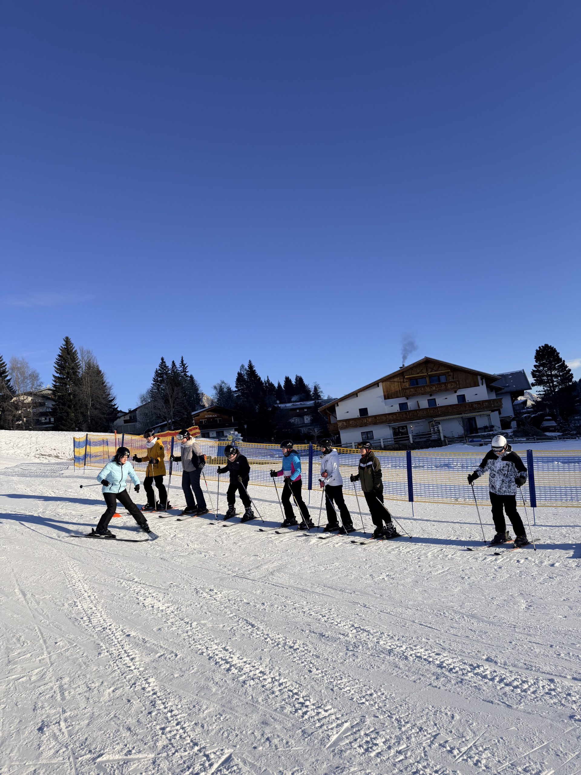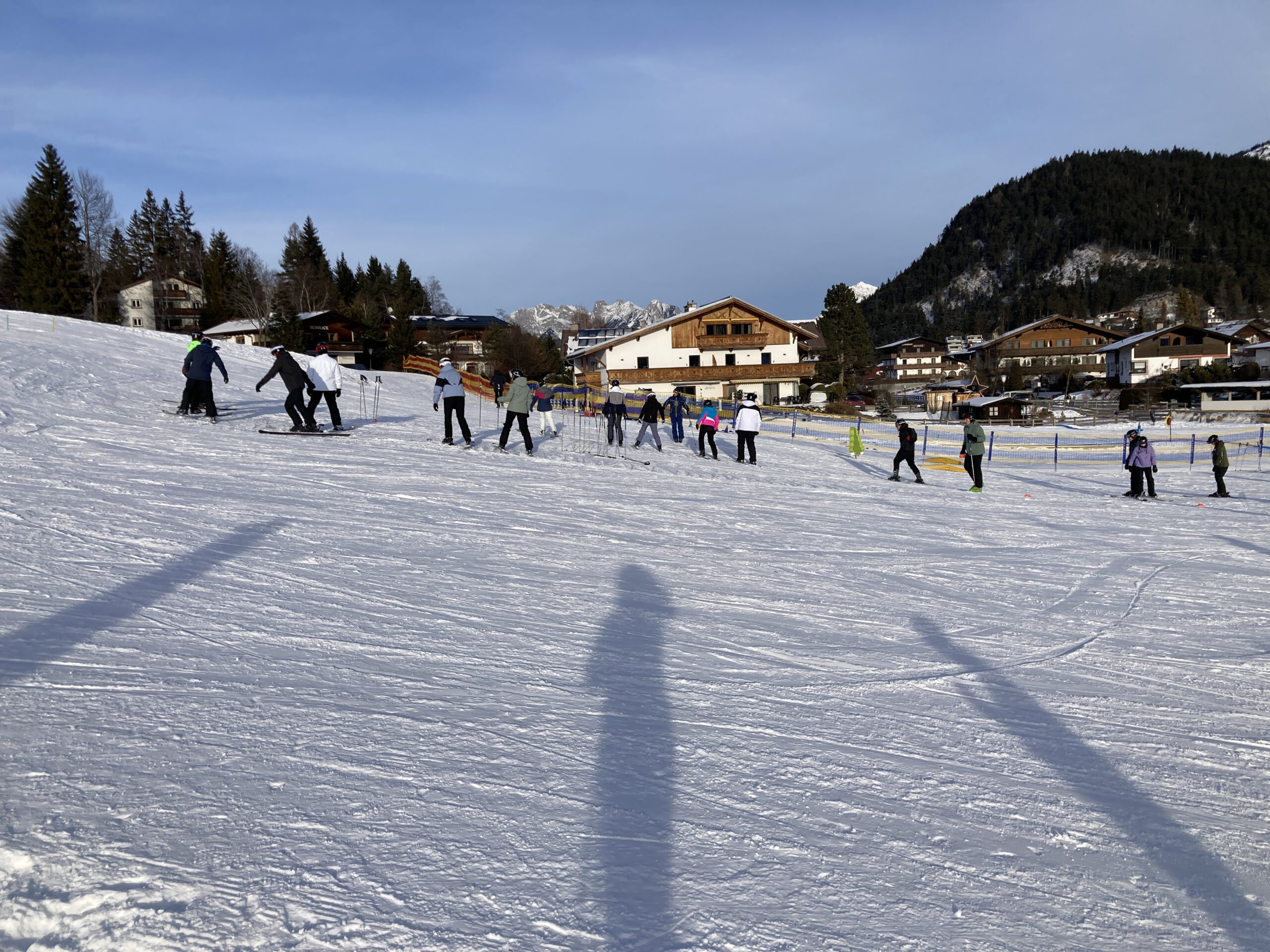 Untergebracht war die Gruppe im Jugendhaus Seefeld, das einen idealen Ausgangspunkt für die sportlichen Aktivitäten bot. Bereits im Vorfeld konnten sich die Teilnehmenden für eine der beiden Sportarten Ski Alpin oder Ski Langlauf entscheiden. Am ersten Skitag erfolgte die Gruppeneinteilung in drei Anfängergruppen, eine Fortgeschrittenengruppe im alpinen Skilauf sowie eine Langlaufgruppe.