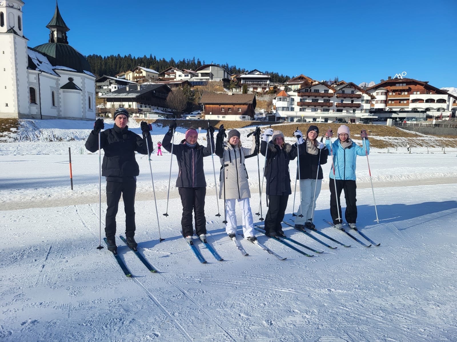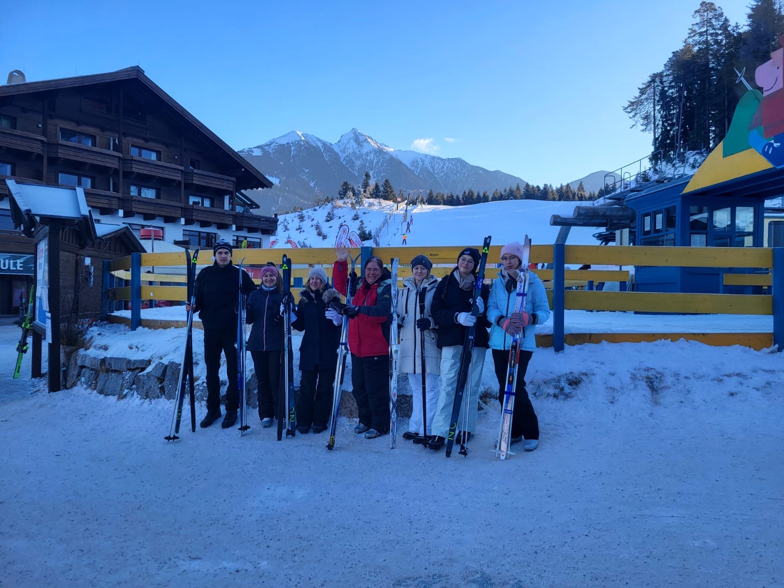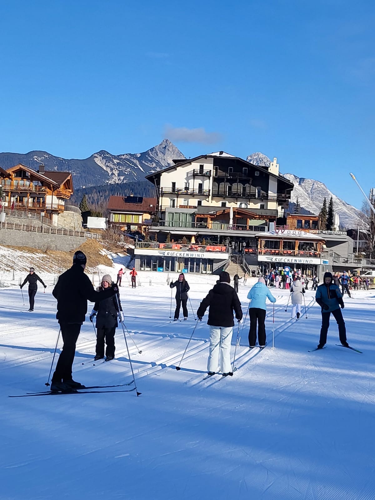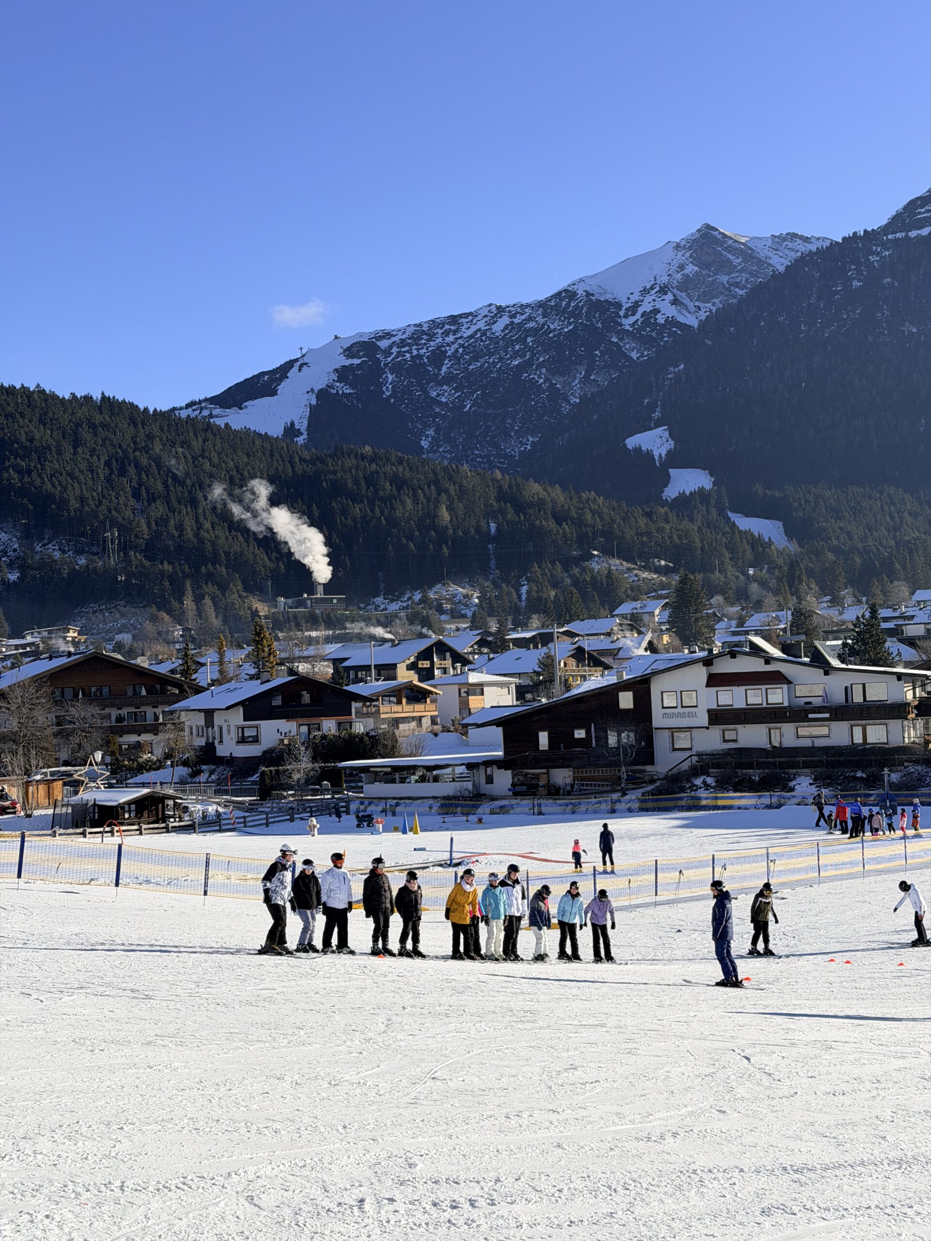 Untergebracht war die Gruppe im Jugendhaus Seefeld, das einen idealen Ausgangspunkt für die sportlichen Aktivitäten bot. Bereits im Vorfeld konnten sich die Teilnehmenden für eine der beiden Sportarten Ski Alpin oder Ski Langlauf entscheiden. Am ersten Skitag erfolgte die Gruppeneinteilung in drei Anfängergruppen, eine Fortgeschrittenengruppe im alpinen Skilauf sowie eine Langlaufgruppe.