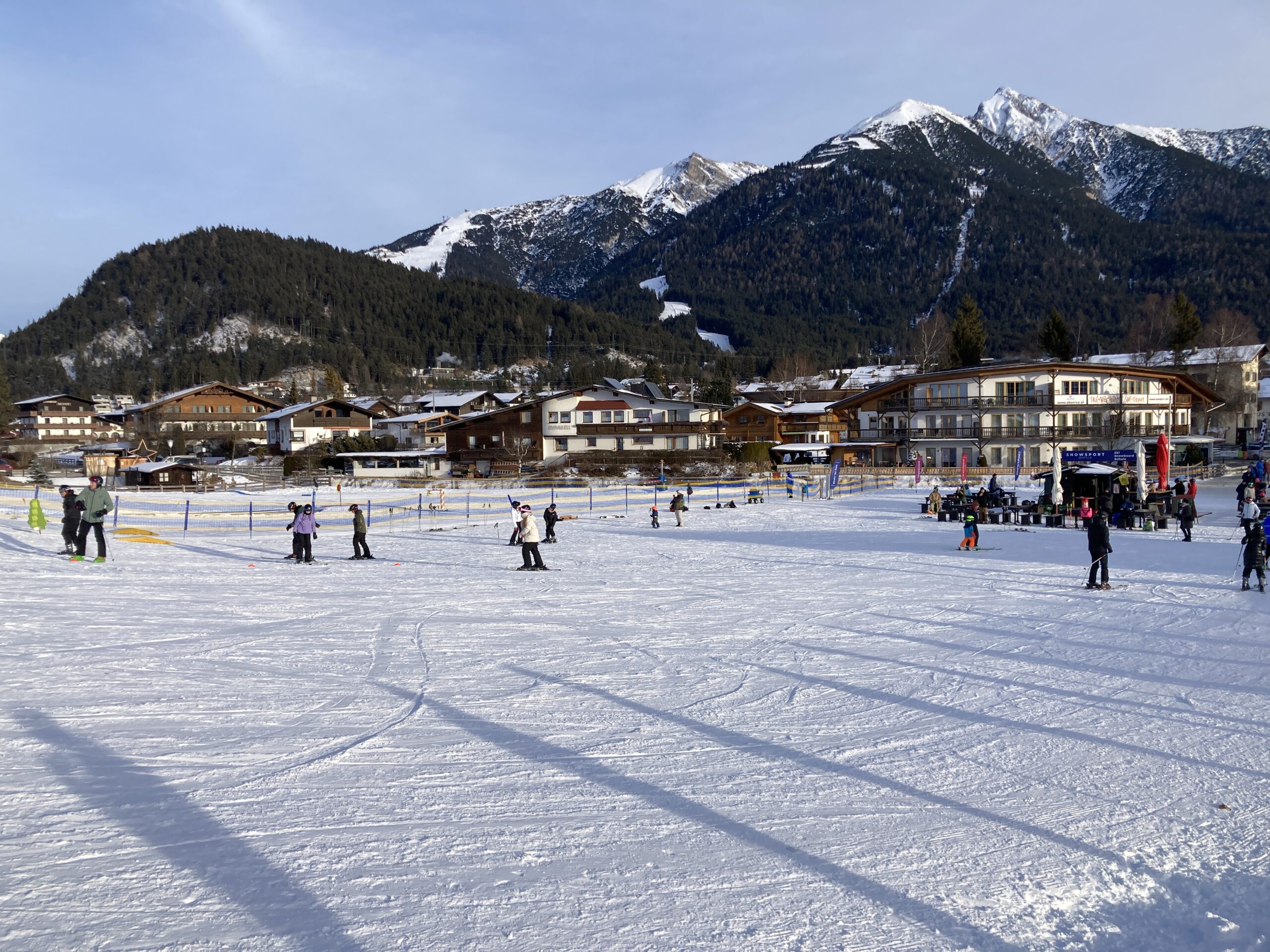 Trainiert und geübt wurde im Stadion Seefeld, am Anfängerhang Geigenbühel sowie im Skigebiet der Bergbahnen Rosshütte. Dieses überzeugte nicht nur durch ein abwechslungsreiches Pistenniveau, sondern auch durch eine beeindruckende Panorama-Aussicht über die Bergwelt der Region Seefeld. Bei besten Wetterbedingungen und sehr guten Pistenverhältnissen konnten alle Schülerinnen und Schüler deutliche Fortschritte erzielen.